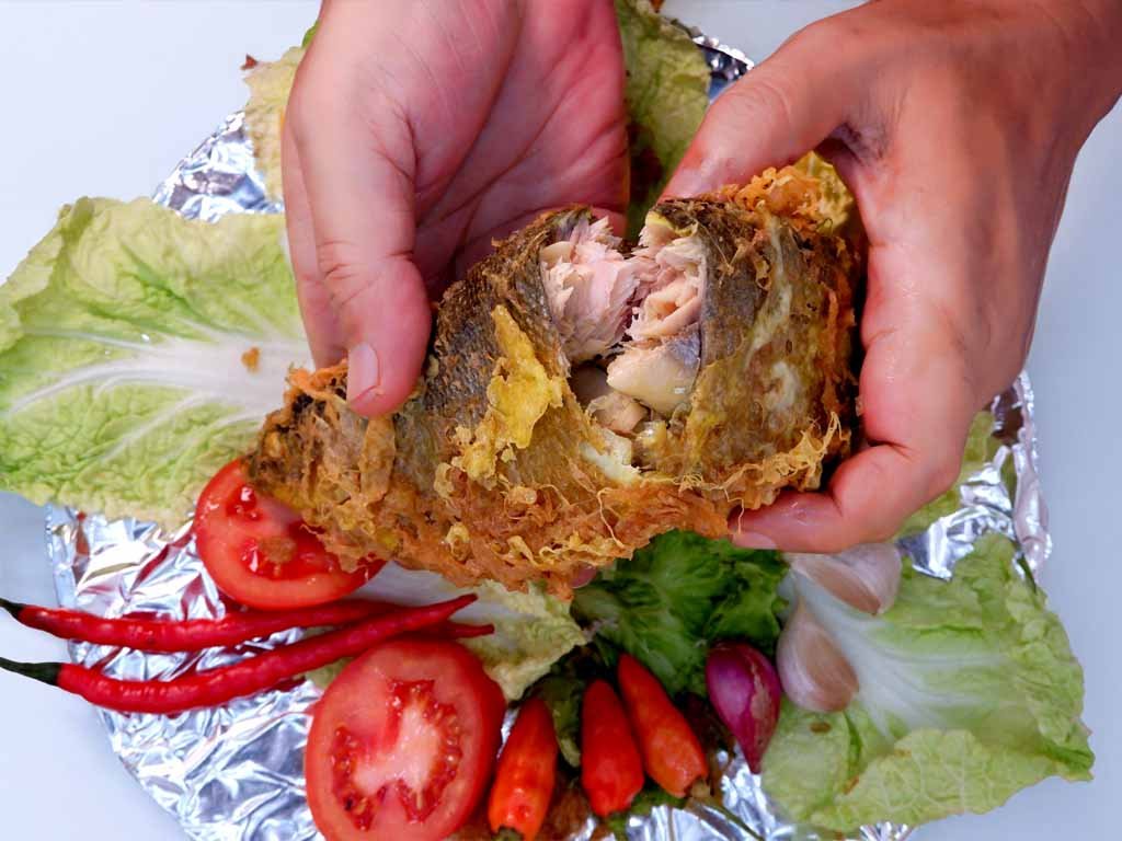 Ikan utuh diproses tanpa dibelah, berat sebelum diolah/mentah +/- 250gram, dicampur dengan racikan bumbu rempah, tanpa bahan pengawet sehingga menghasilkan rasa yg ”Gurih, Nikmat dan Pastinya bergizi“.