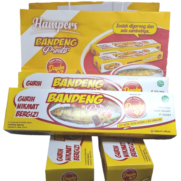 Kami menjual Bandeng Presto siap santap yang sdh digoreng dan ada sambelnya, sangat praktis ga perlu repot, khusus pesanan luar kota, harap menggunakan kurir express, karena kalau pakai yg reguler, kami tidak jamin kualitas nya.